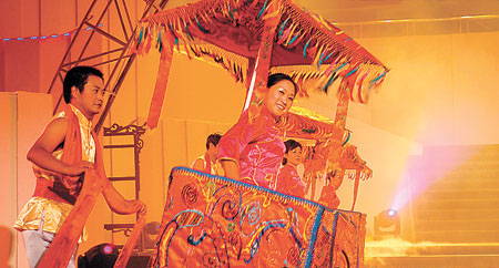流傳于高郵市車邏鄉一帶,距今約有在百多年歷史,是民間婚嫁迎娶習俗中表演的一種舞蹈。表演者人數可多可少,但不得少于8人。由4人扮轎夫,共抬1頂花轎;其余人員手拿各種樂器,既是舞蹈的表演者,又為吹鼓手。花轎出門,途中以及把新娘迎娶到家,全過程不停地吹奏表演。主要舞步為跳踮卡、園場步等;隊形為串8字形、分8字形、絞麻花等。氣氛歡快熱烈。